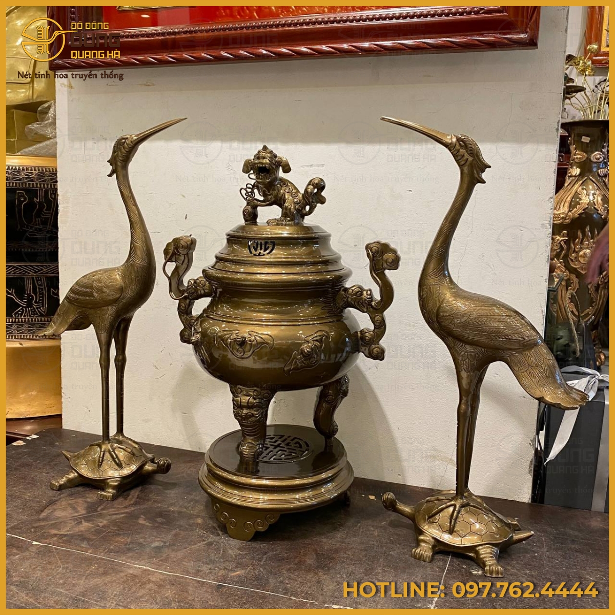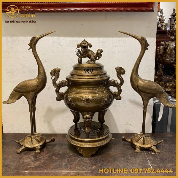 Bộ tam sự hạc là đồ thờ trang nghiêm tinh xảo, giàu ý nghĩa truyền thống sâu sắc – Tác phẩm có tại đồ đồng Dung Quang Hà. Hãy đến ngay với chúng tôi để có thể sở hữu những tác phẩm đẹp với nhiều ưu đãi hấp dẫn!
