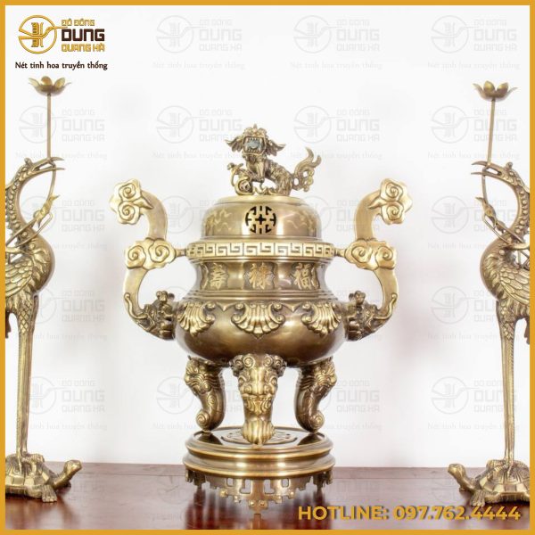 Bày trí Bộ Tam sự hạc bằng đồng hun giả cổ trên bàn thờ không chỉ làm tôn thêm vẻ trang trọng, uy nghi của không gian thờ tự, mà còn là cách để con cháu bày tỏ lòng thành kính, tri ân công đức tổ tiên. Đây không chỉ là vật phẩm thờ cúng có giá trị nghệ thuật cao, mà còn là biểu tượng phong thủy mang năng lượng tốt lành, giúp gia đạo bình an, hưng vượng và bền vững theo thời gian.