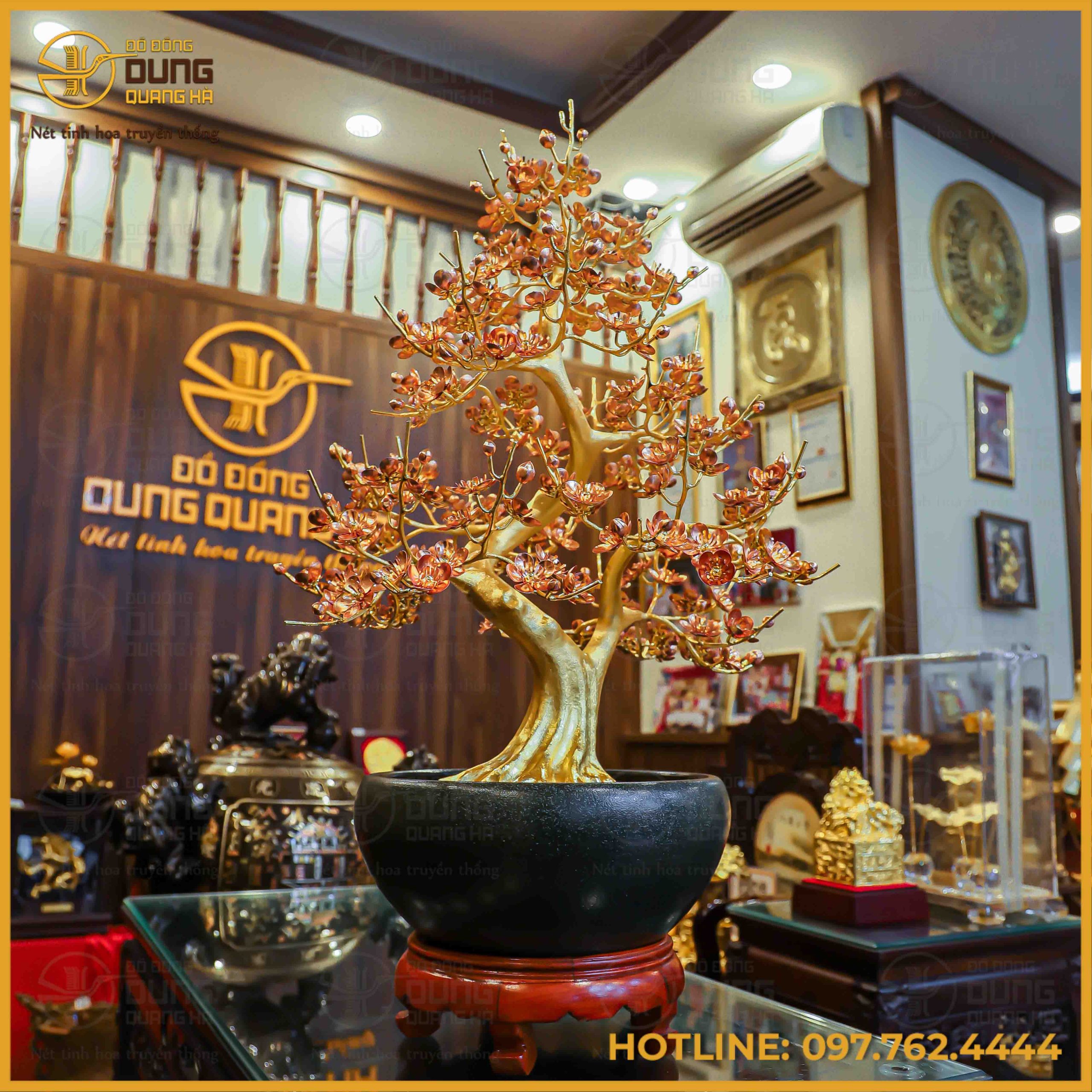Cây đào đồng vàng mạ vàng là sự giao thoa hoàn mỹ giữa nét đẹp thanh tao của thiên nhiên và luồng sinh khí mạnh mẽ từ sắc vàng kim óng ả. Mỗi cánh hoa, mỗi nhành cây được chế tác thủ công tỉ mỉ, mang theo lời chúc về một khởi đầu viên mãn, tài lộc trường tồn và may mắn trọn đời.