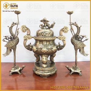 Bộ đồ thờ cúng tam sự hạc đồng vàng hai công nghệ tinh xảo