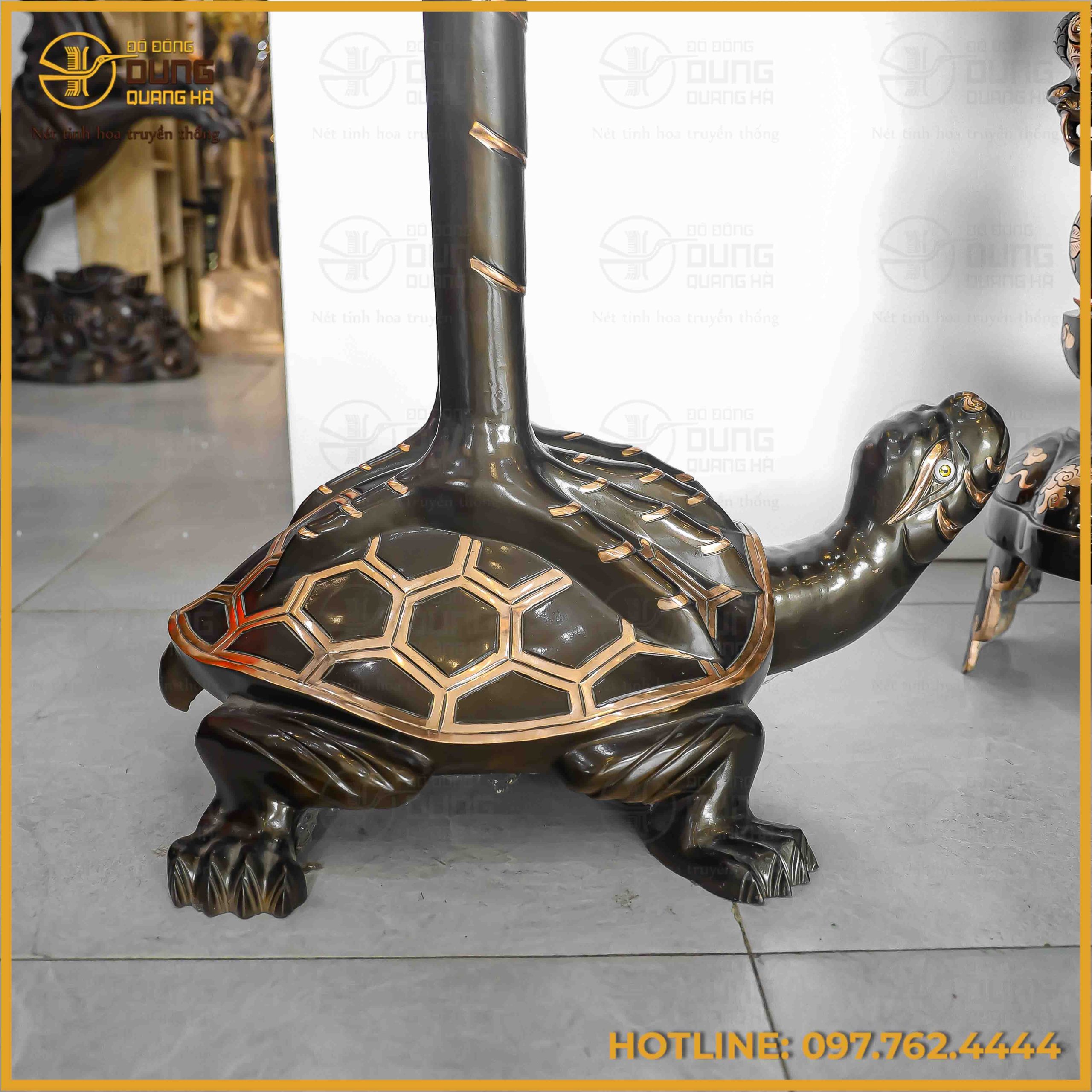 Trong không gian thờ tự của người Việt, bộ đỉnh đồng và đôi hạc thờ cỡ lớn không đơn thuần là những vật phẩm trang trí xa xỉ, mà chính là “long mạch” kết nối giữa cõi thực và cõi tâm linh. Đỉnh đồng với hình dáng vững chãi, bụng phình tròn tượng trưng cho sự hội tụ của khí thiêng trời đất, là nơi trầm hương lan tỏa để thanh lọc uế khí, dẫn dắt lòng thành của con cháu chạm đến linh hồn tiên tổ. Trên nắp đỉnh, hình tượng nghê vờn cầu không chỉ là linh vật canh giữ sự bình yên cho gia đạo mà còn biểu trưng cho sức mạnh ngăn chặn tà ma, bảo vệ sự tôn nghiêm của gian thờ. Khi kết hợp cùng đôi hạc đứng trên lưng rùa, ý nghĩa này lại được nâng tầm thành một triết lý nhân sinh sâu sắc về sự trường tồn. Hạc – loài chim tiên thanh cao của trời, rùa – linh vật bền bỉ của đất; sự gắn kết “thanh cao trên lưng vững chãi” tạo nên biểu tượng của sự hòa hợp âm dương, thiên địa nhân hợp nhất. Với kích thước lớn, bộ khí cụ này tạo ra một uy lực thị giác mạnh mẽ, nhắc nhở hậu thế về sự uy nghiêm của nguồn cội, đồng thời thể hiện khát vọng về một đời sống gia tộc hưng thịnh, bền vững như tùng hạc và sắt son như đồng đúc. Mỗi đường nét chạm trổ trên khí tự không chỉ phản ánh bàn tay tài hoa của nghệ nhân mà còn là lời nguyện cầu cho mạch ngầm phúc đức của dòng họ mãi luôn tuôn chảy qua nhiều thế hệ.