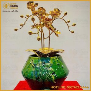 Chậu hoa lan mạ vàng bằng đồng phong thuỷ