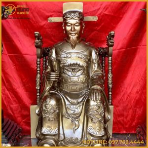 Tượng cụ tổ ngồi ghế rồng bằng đồng đỏ làm màu cao cấp