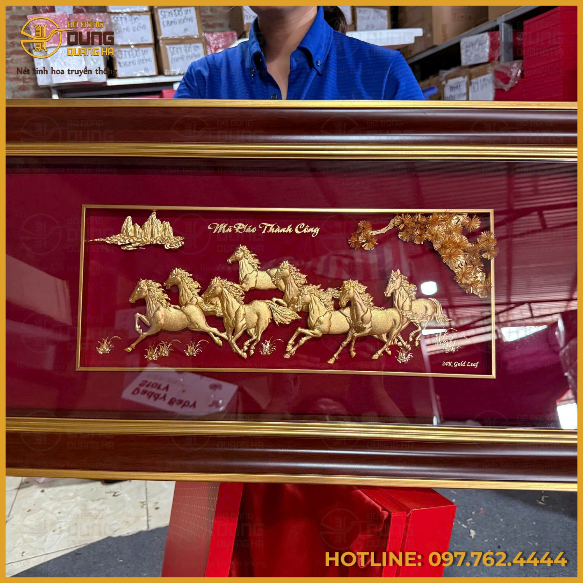 Khắc họa hình ảnh tám tuấn mã dũng mãnh trên nền vàng 24K rực rỡ, bức tranh Mã Đáo Thành Công không chỉ là một kiệt tác nghệ thuật mà còn là biểu tượng khai vận, mang lại vượng khí và sự hanh thông cho sự nghiệp. Đây chính là lời chúc khởi đầu thắng lợi, ghi dấu ấn đẳng cấp cho mọi không gian trưng bày sang trọng.