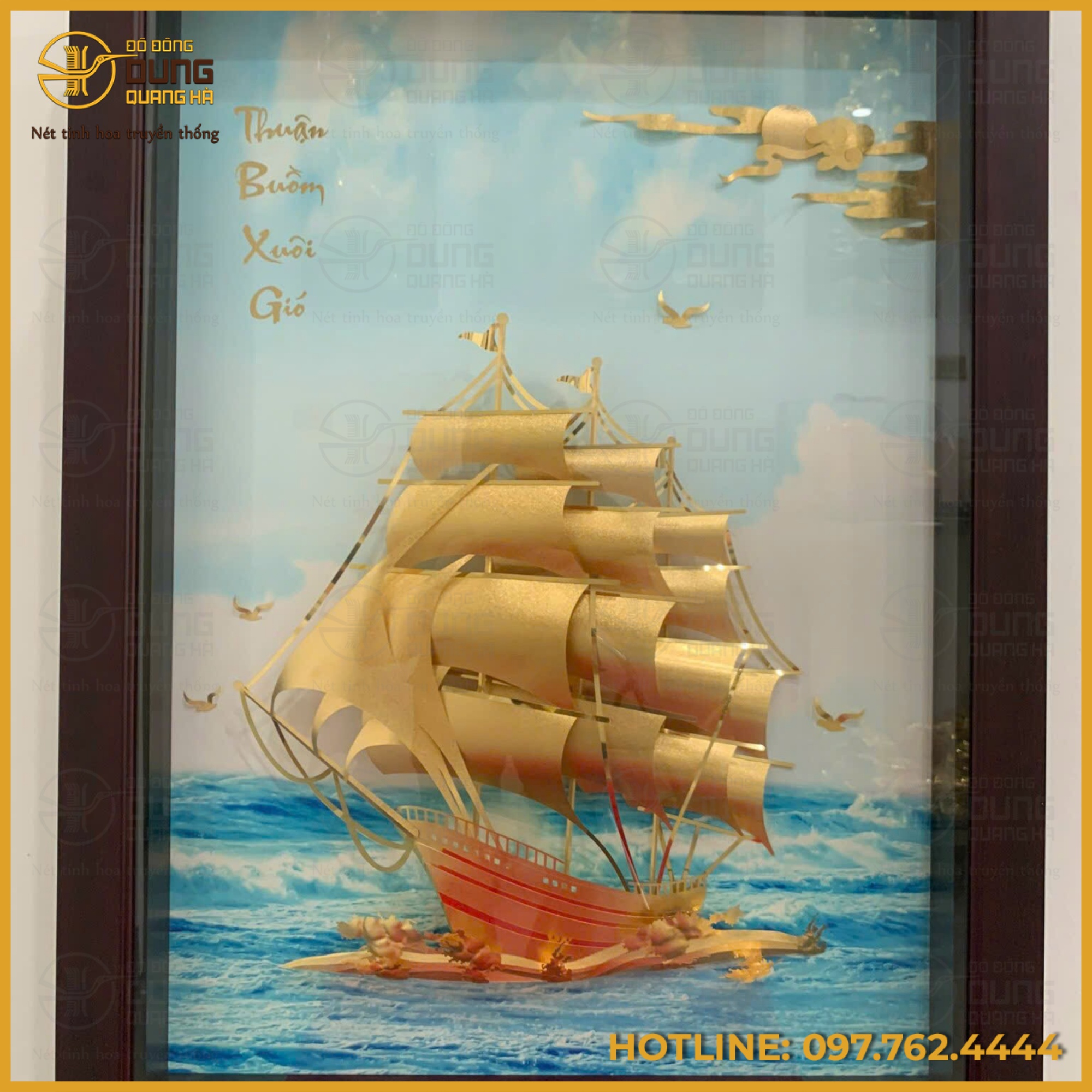 giữa ánh vàng kim sang trọng của thuyền buồm và sắc lam dịu nhẹ của biển trời đã tạo nên một bức tranh phong thủy vừa mạnh mẽ, vừa thanh thoát. Tác phẩm không chỉ khắc họa sinh động hình ảnh con thuyền vươn khơi mà còn lan tỏa nguồn năng lượng tích cực, biểu trưng cho hành trình hanh thông, thuận lợi và đầy triển vọng trong cuộc sống.