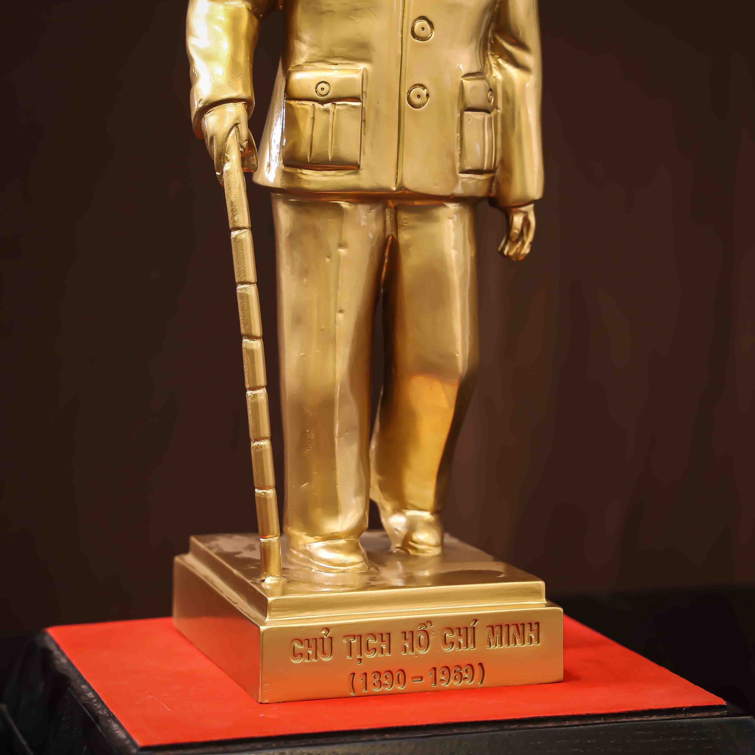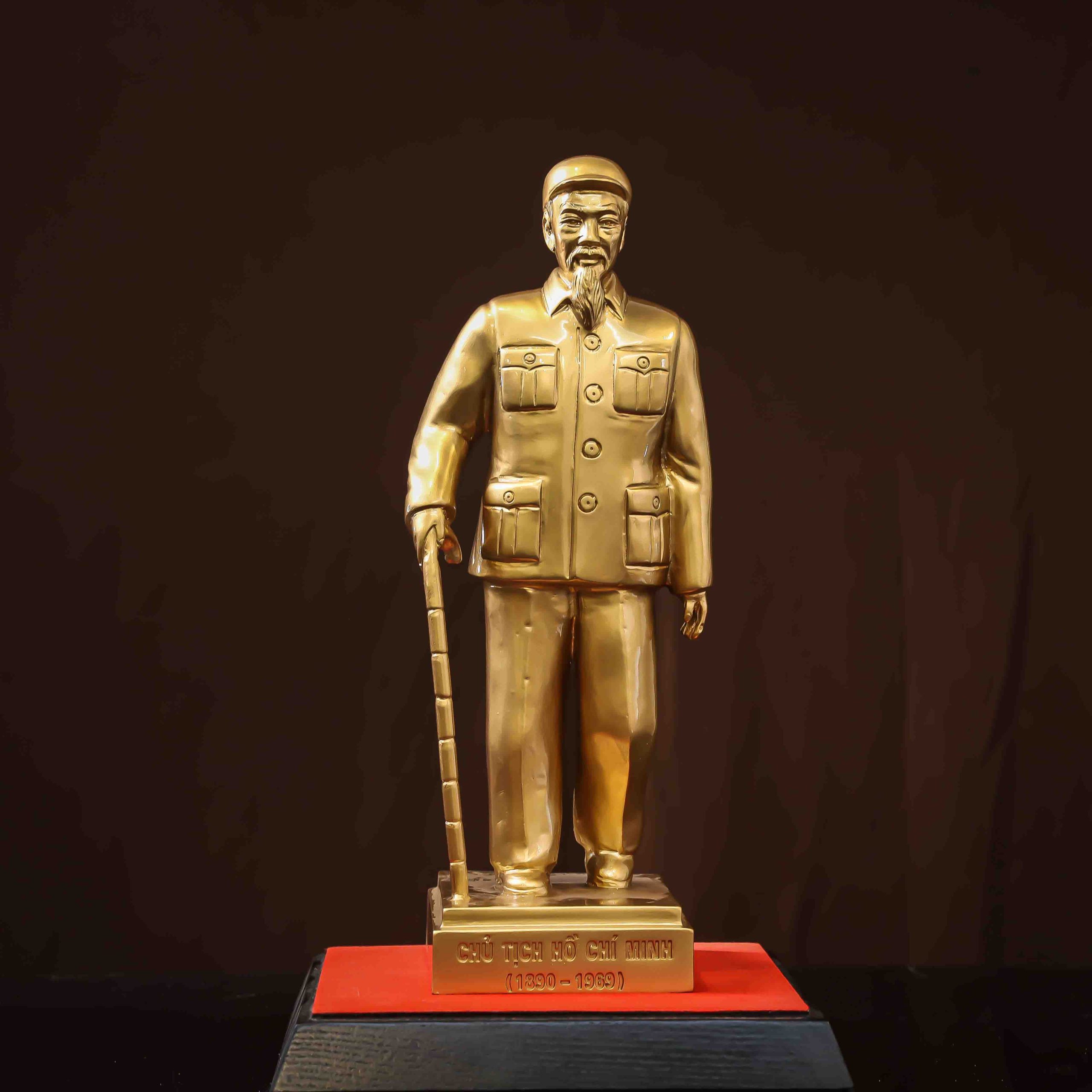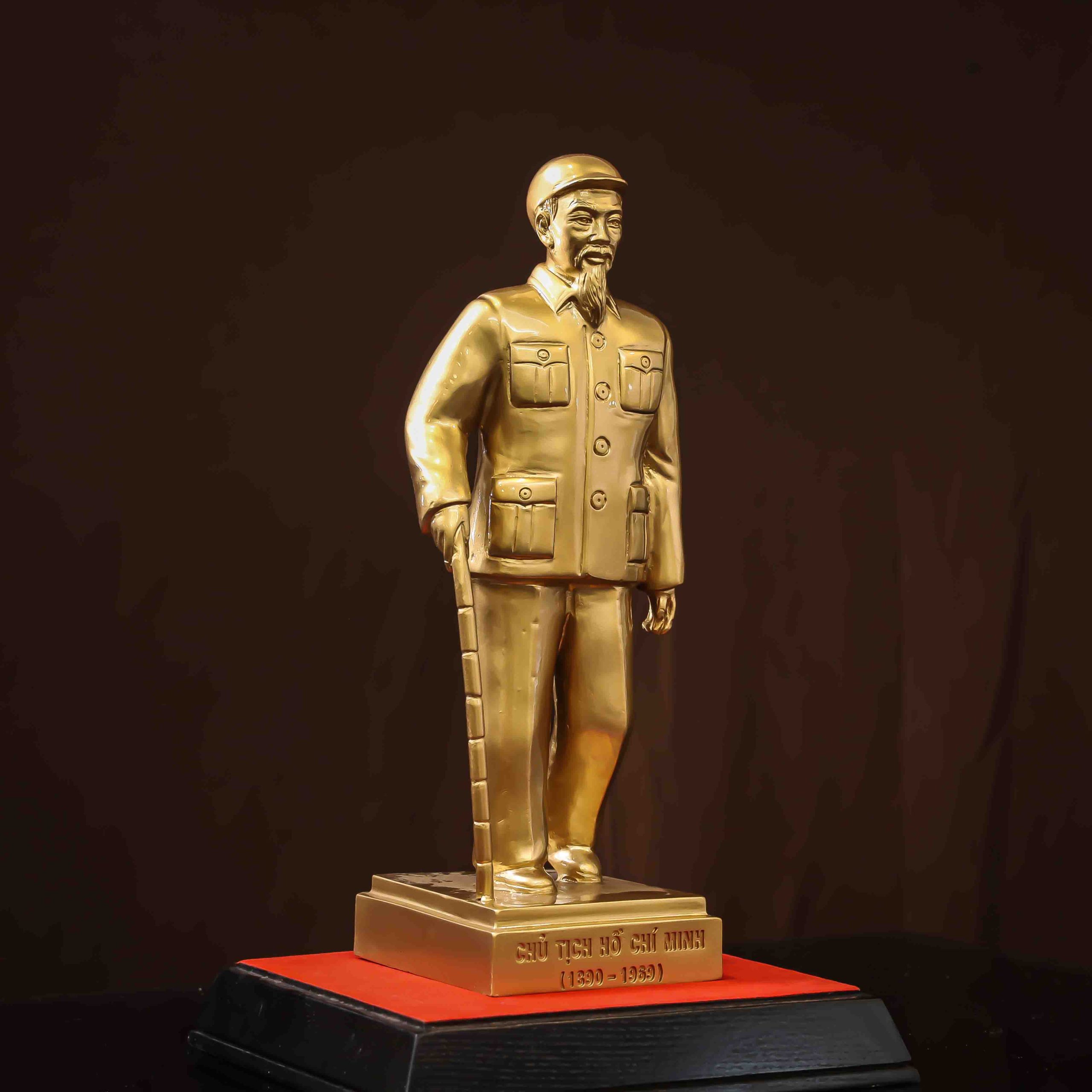 Khắc họa chân thực diện mạo hiền từ và cốt cách thanh cao của Vị lãnh tụ kính yêu, pho tượng Bác Hồ đồng đỏ cao 35cm mang đến sự trang nghiêm tuyệt đối cho không gian trưng bày. Với trọng lượng 12kg đầm chắc và màu sắc chiều sâu, đây là kỷ vật vô giá thể hiện truyền thống “Uống nước nhớ nguồn” của dân tộc.