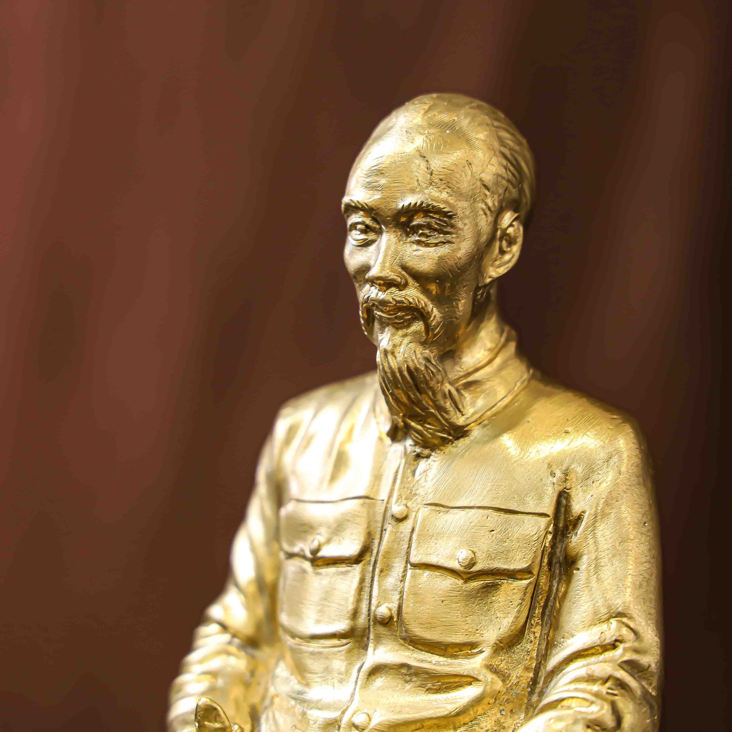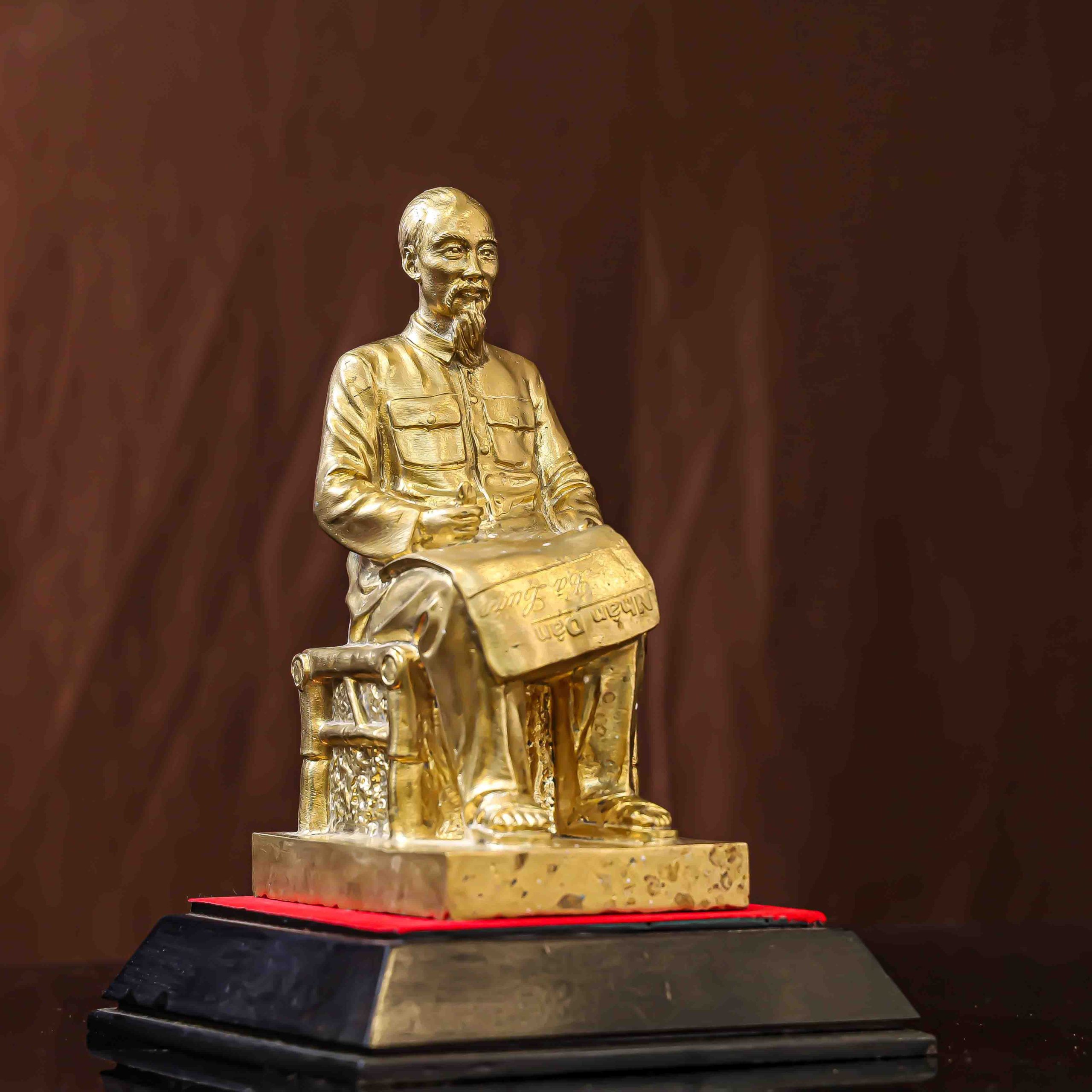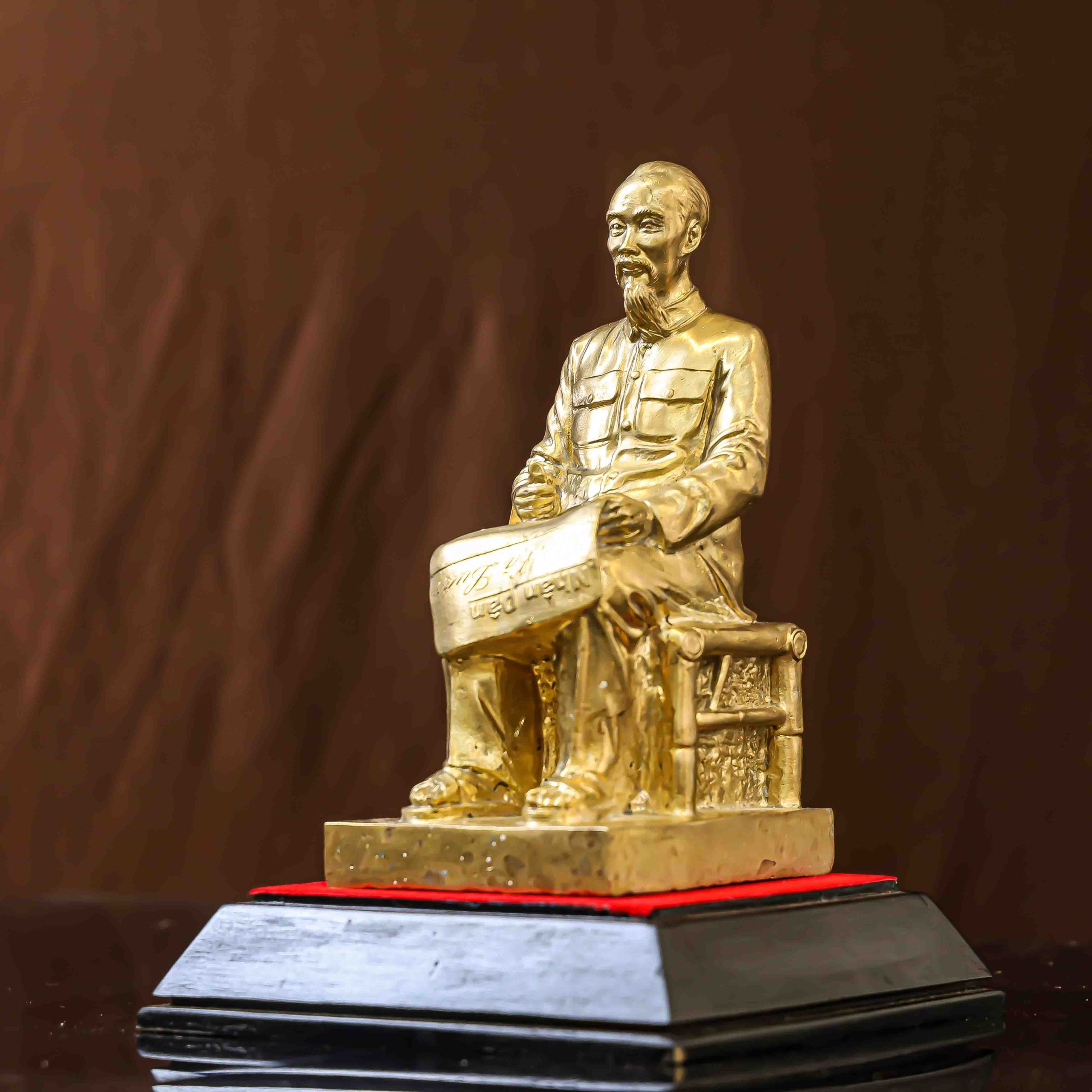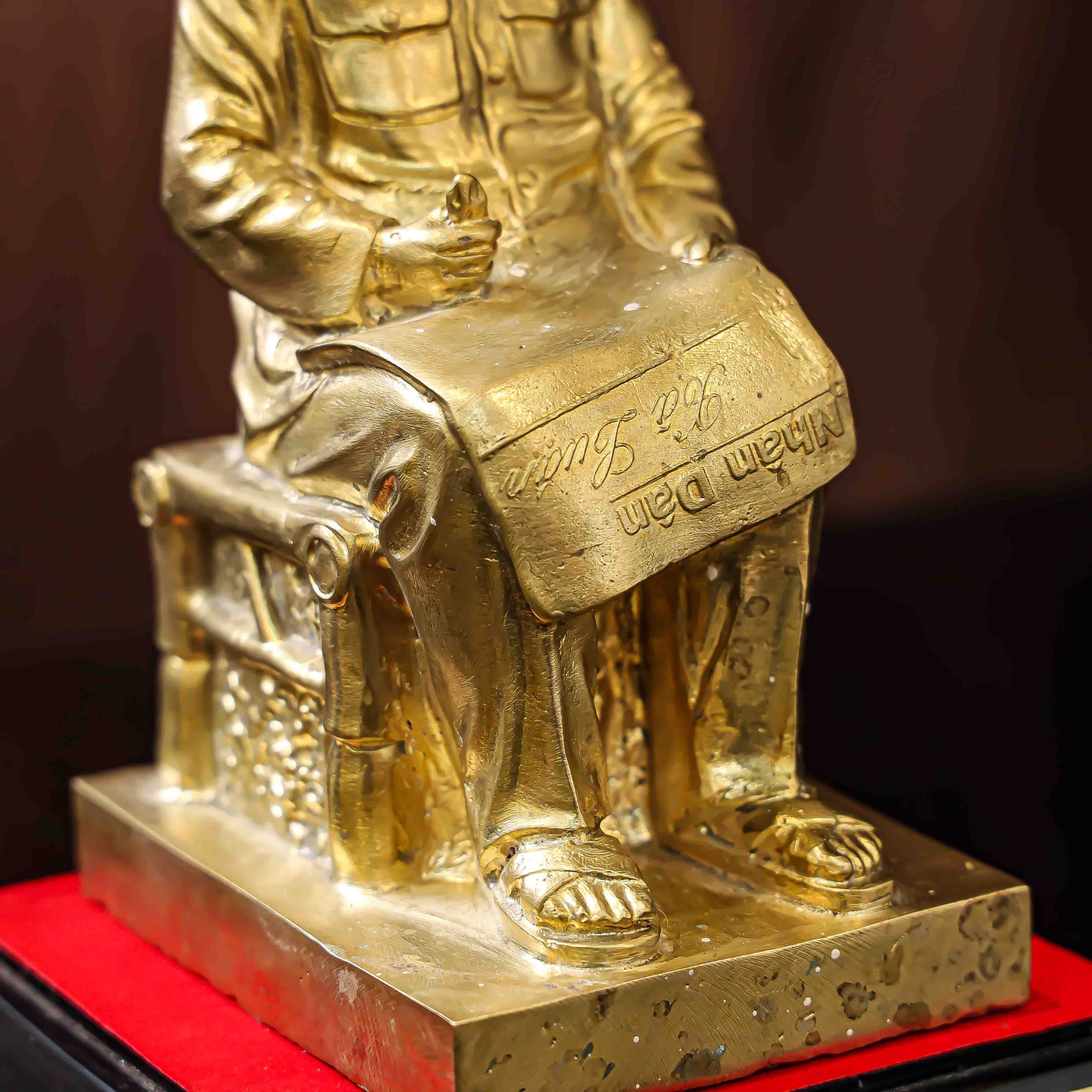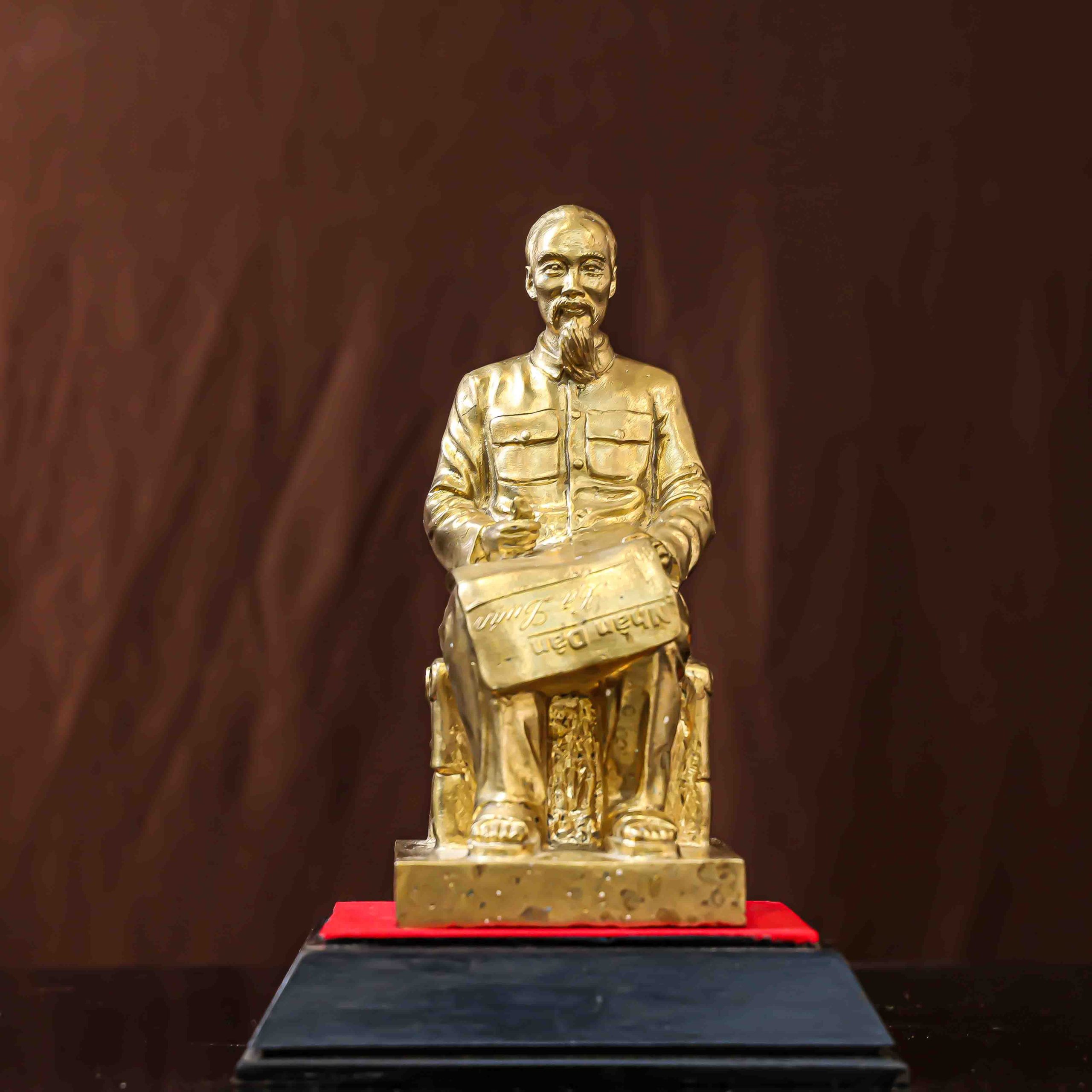 Khắc họa chân thực hình ảnh Vị lãnh tụ kính yêu trong tư thế ngồi đọc báo thư thái, pho tượng Bác Hồ cao 20cm mang đến cảm giác ấm áp và vô cùng gần gũi. Với chất liệu đồng vàng để mộc nguyên bản, sản phẩm giữ trọn vẻ đẹp tự nhiên, mộc mạc nhưng vẫn toát lên khí chất thanh cao của Người.