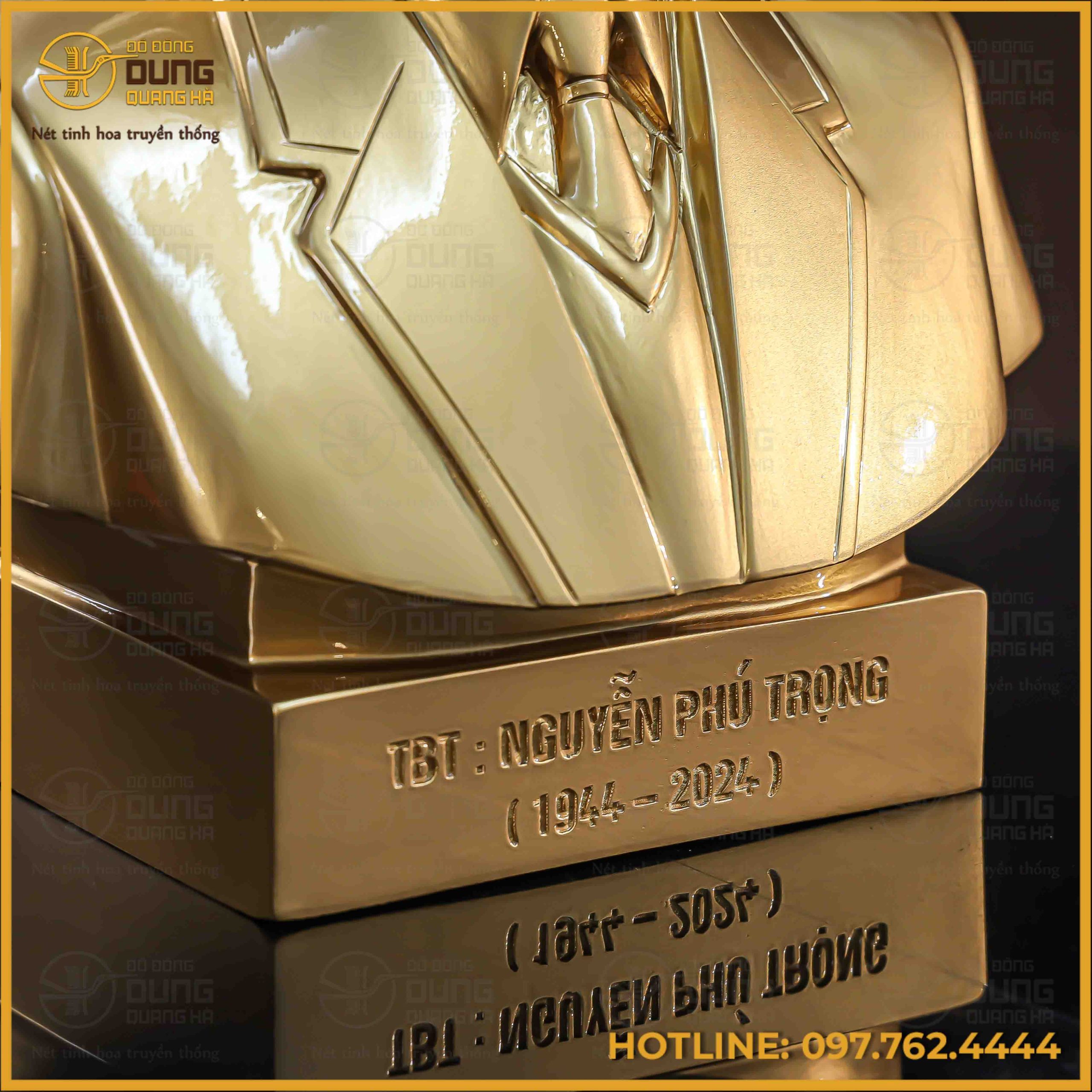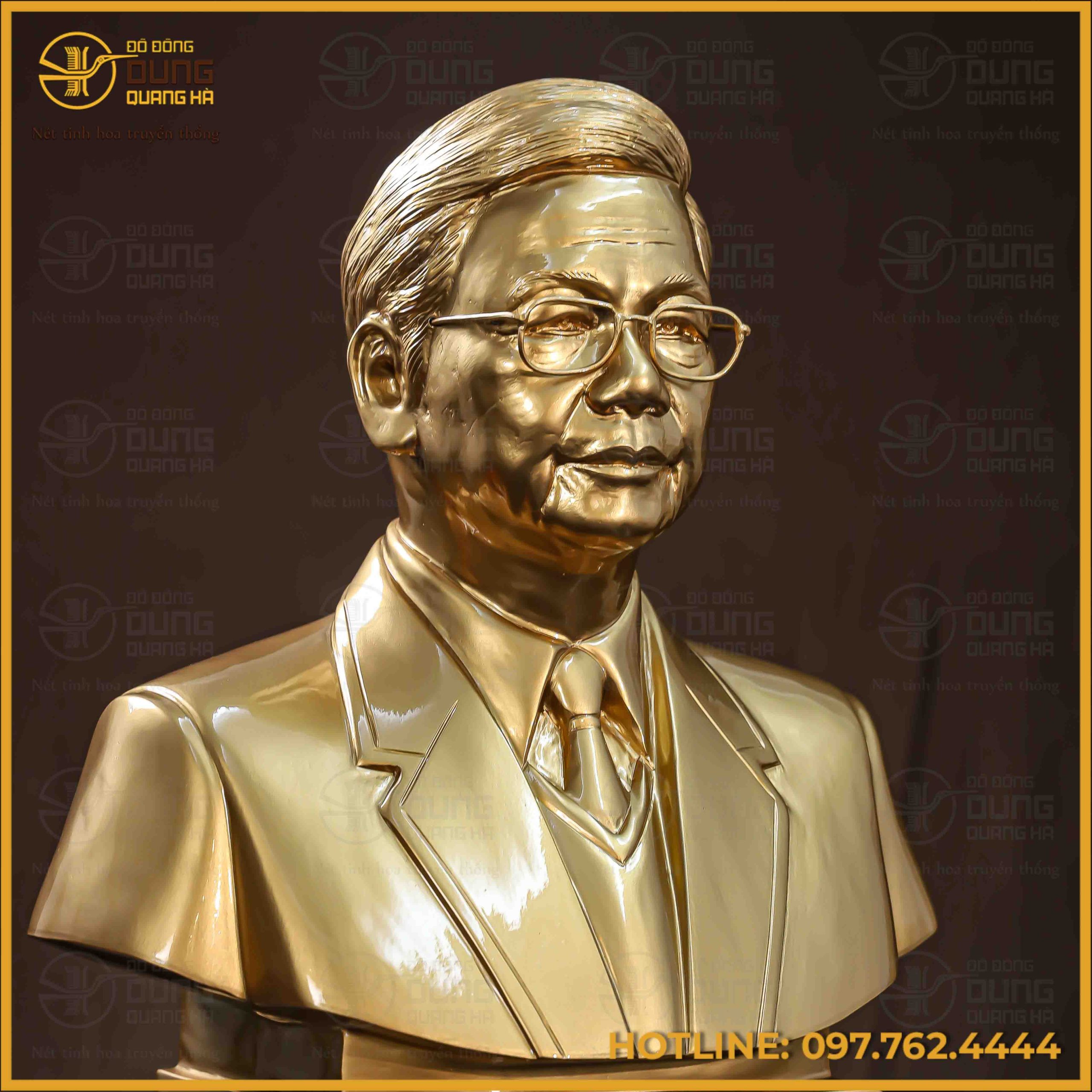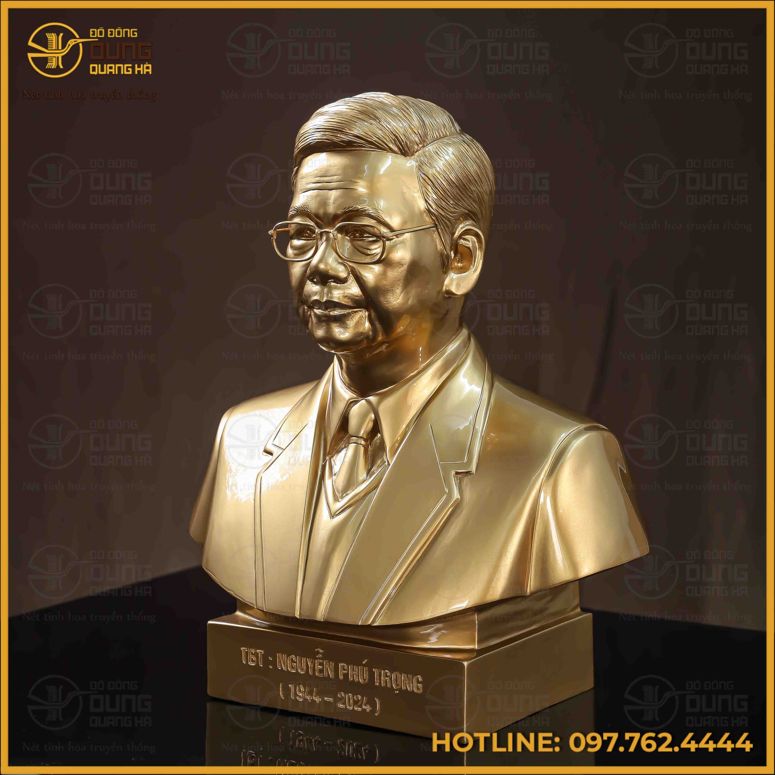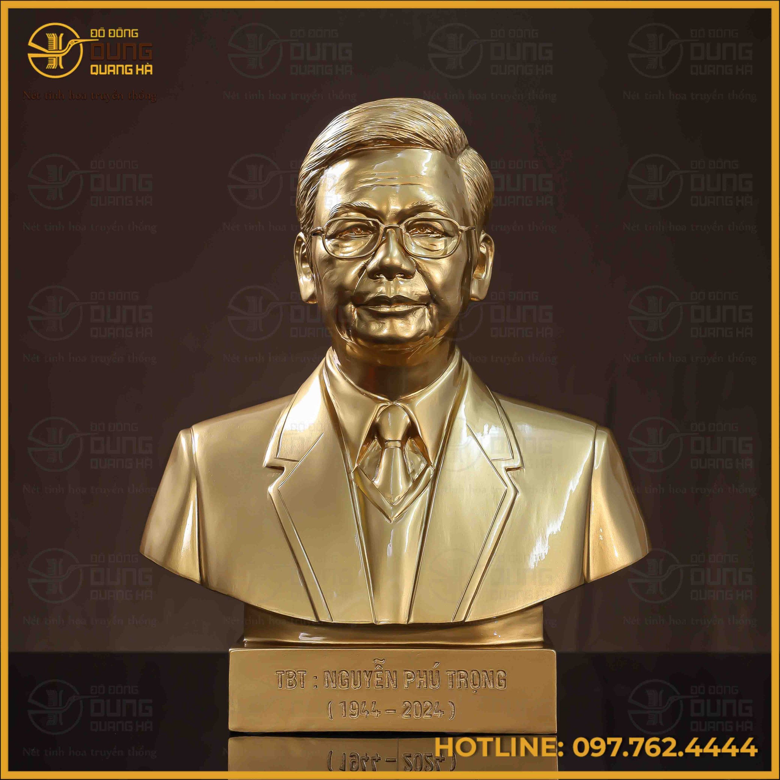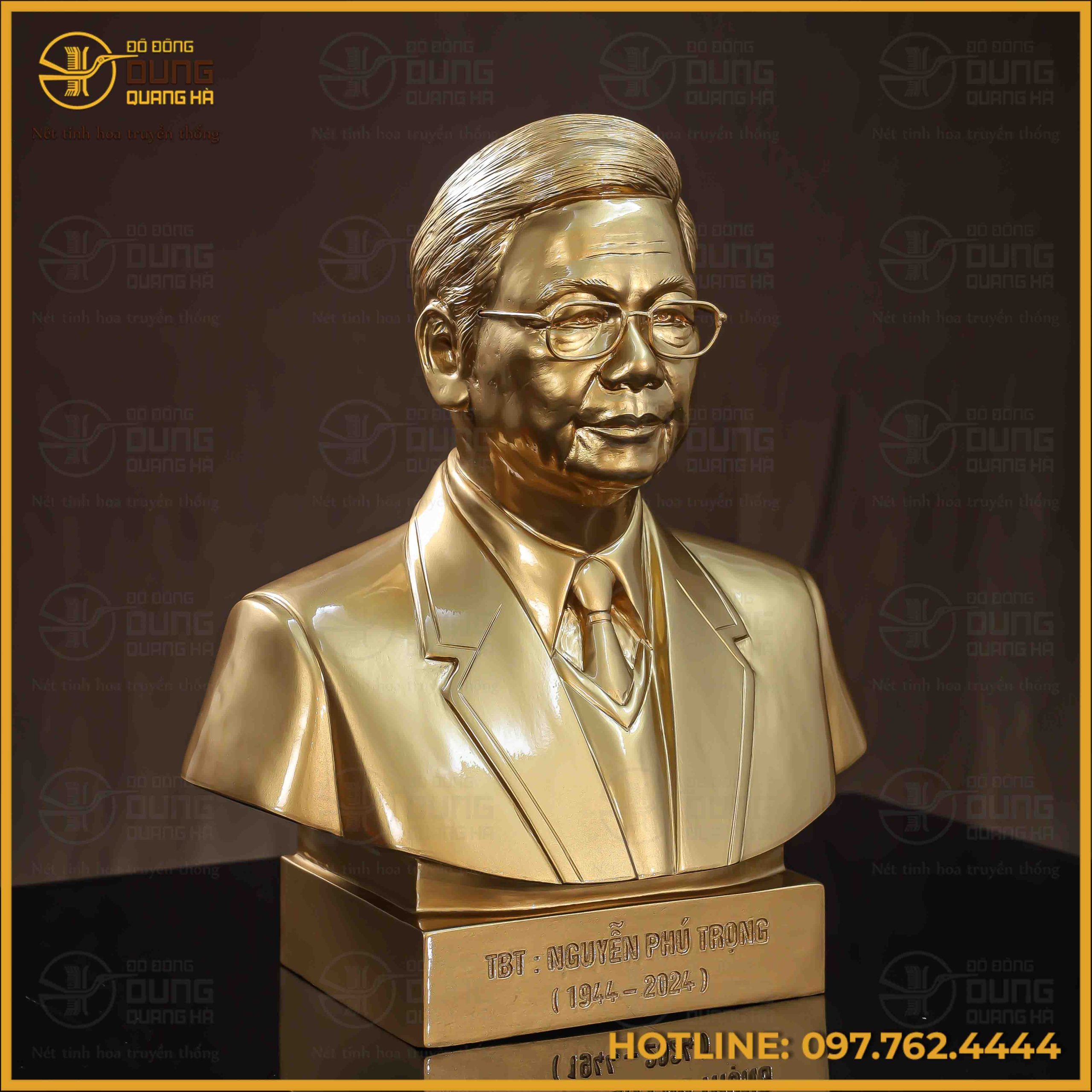 Pho tượng chân dung cố Tổng Bí thư Nguyễn Phú Trọng bằng đồng đỏ là tác phẩm nghệ thuật chứa đựng lòng biết ơn sâu sắc đối với một nhân cách lớn của dân tộc. Với sắc nhũ đồng sang trọng và chiều cao 42cm uy nghiêm, tác phẩm khắc họa chân thực thần thái mẫu mực, trở thành kỷ vật vô giá trong mọi không gian trang trọng.
