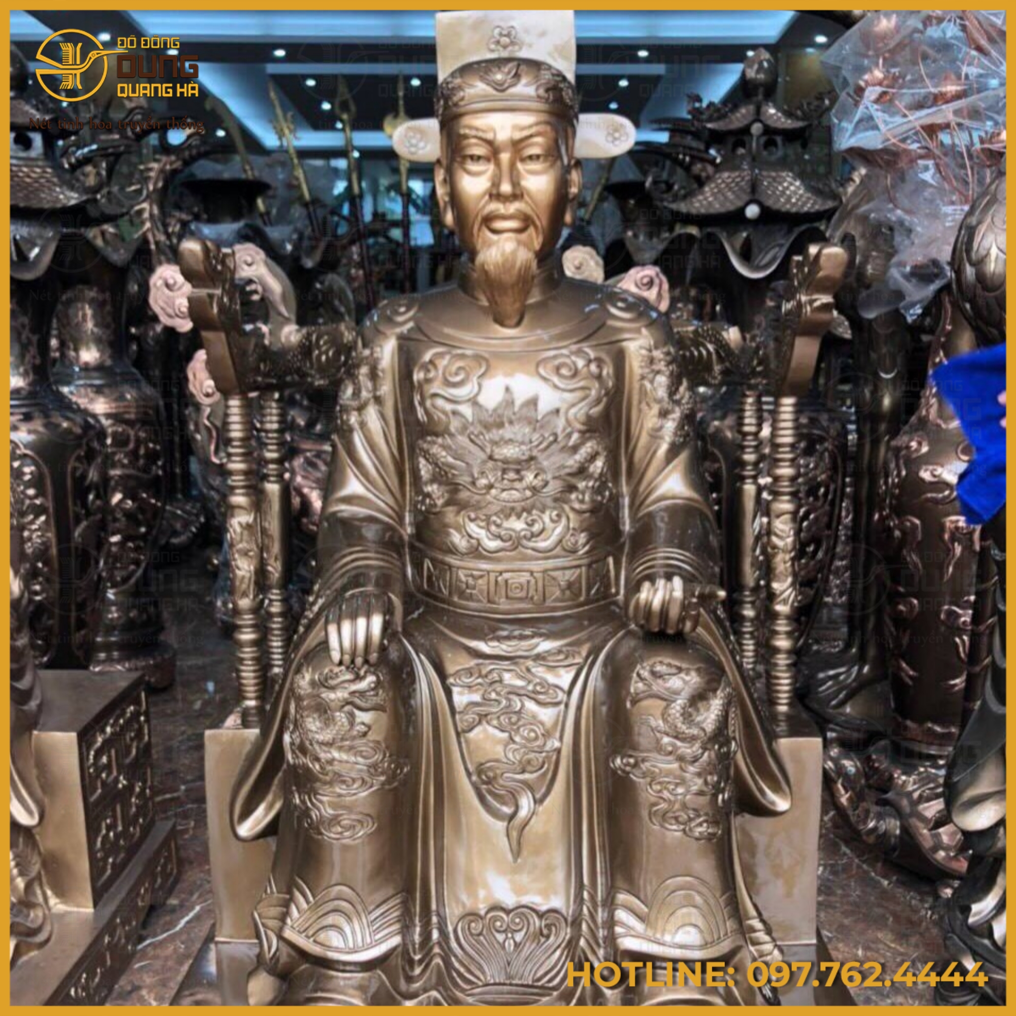 Đồ đồng Dung Quang Hà là đơn vị hàng đầu trong lĩnh vực chế tác tượng đồng theo yêu cầu, đặc biệt nổi bật với dòng tượng cụ tổ thờ gia tiên. Với nhiều năm kinh nghiệm cùng đội ngũ nghệ nhân lành nghề, chúng tôi luôn chú trọng đến từng chi tiết, đảm bảo mỗi tác phẩm không chỉ đẹp về hình thức mà còn chuẩn mực về thần thái và ý nghĩa tâm linh.