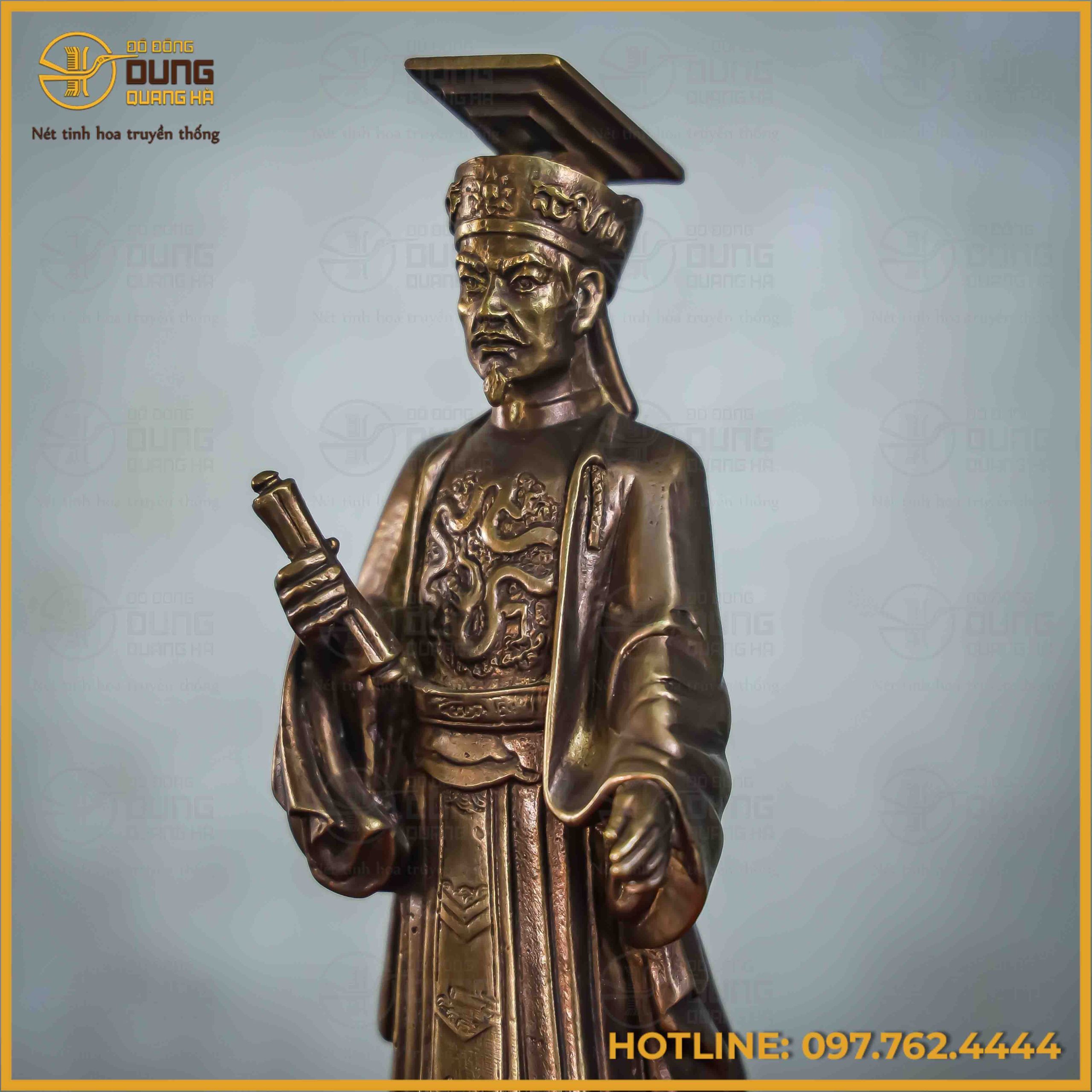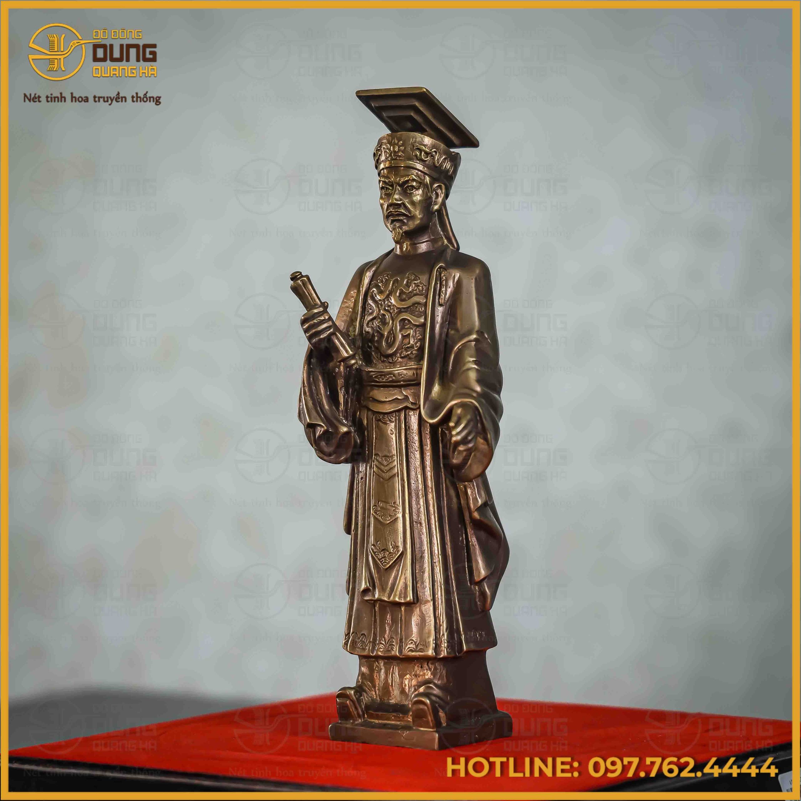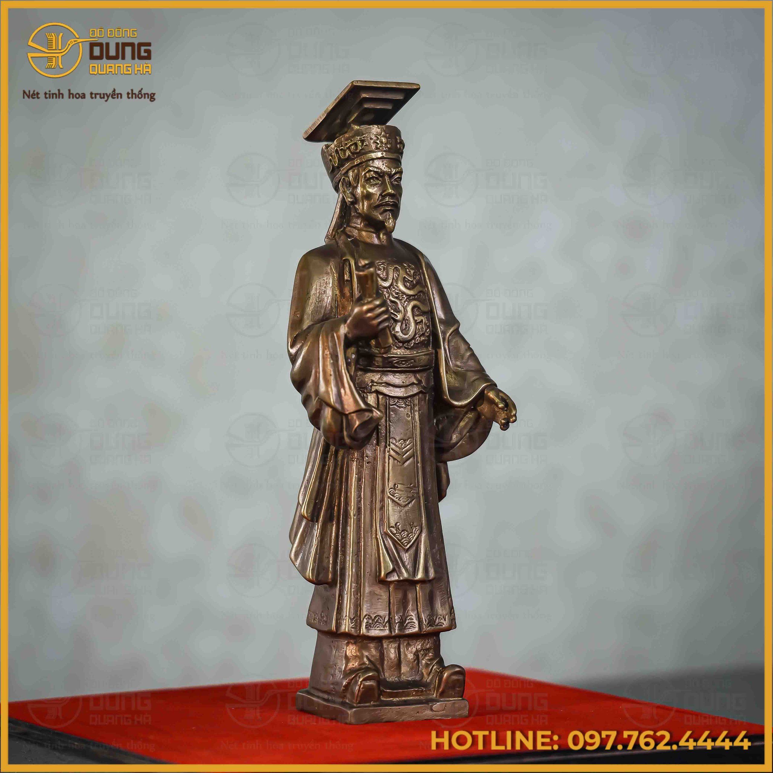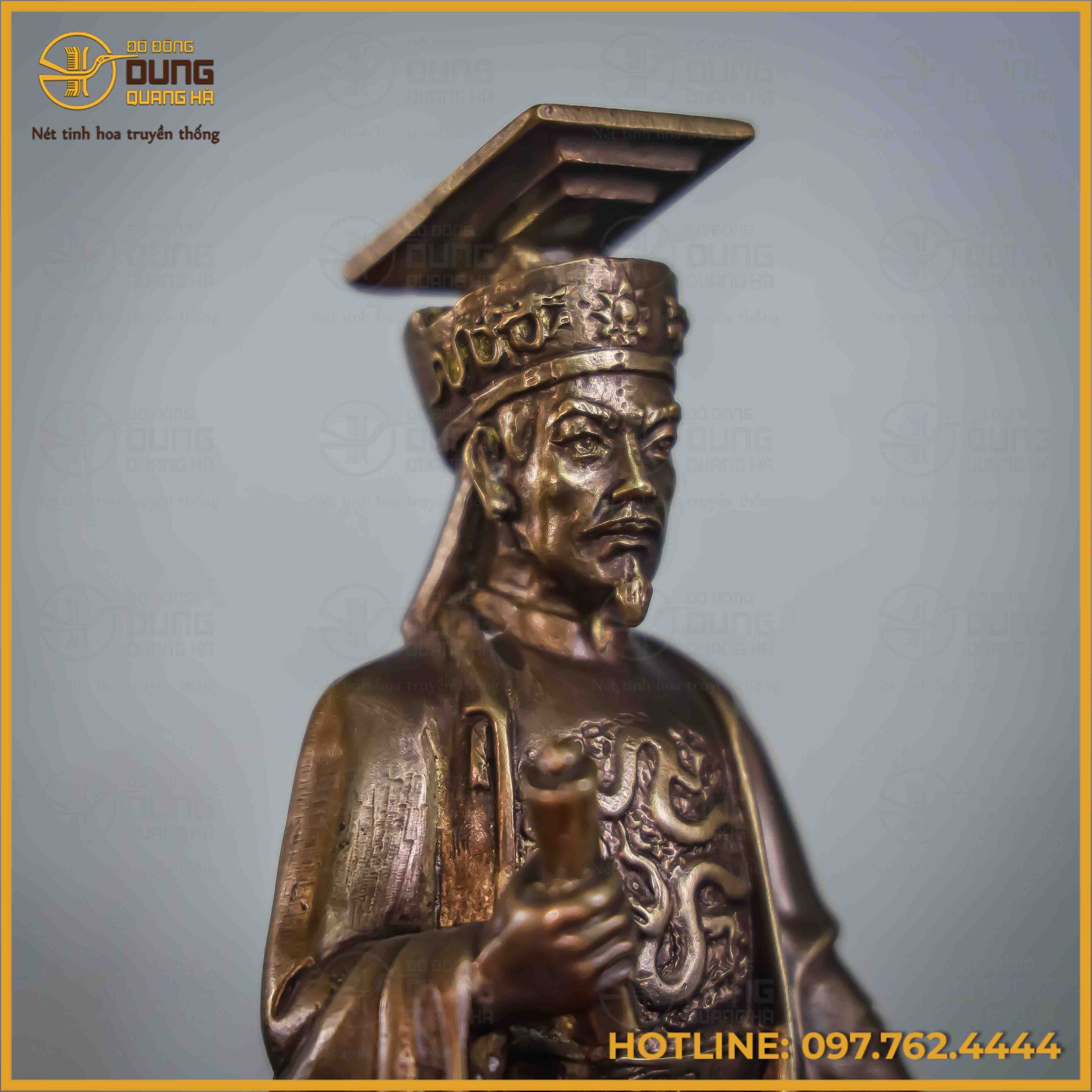 Tượng Lý Thái Tổ bằng đồng vàng cao 23cm ngang 7cm là sự kết tinh hài hòa giữa giá trị lịch sử, nghệ thuật chế tác thủ công và tinh thần tôn vinh bậc minh quân vĩ đại của dân tộc. Từng đường nét được chạm khắc chuẩn xác, thể hiện thần thái uy nghi, trí tuệ và tầm vóc của vị hoàng đế đã đặt nền móng cho thời kỳ thịnh trị lâu dài.