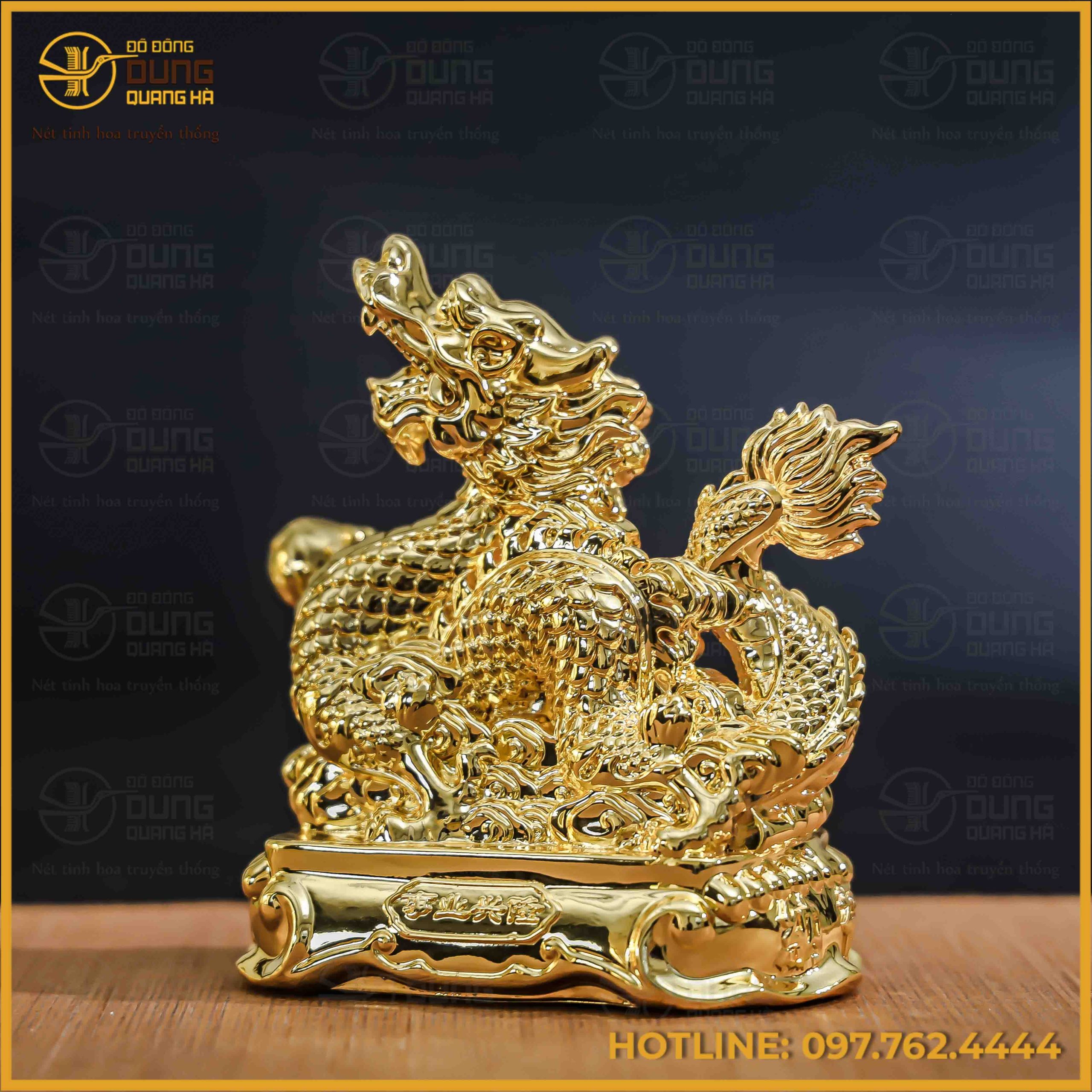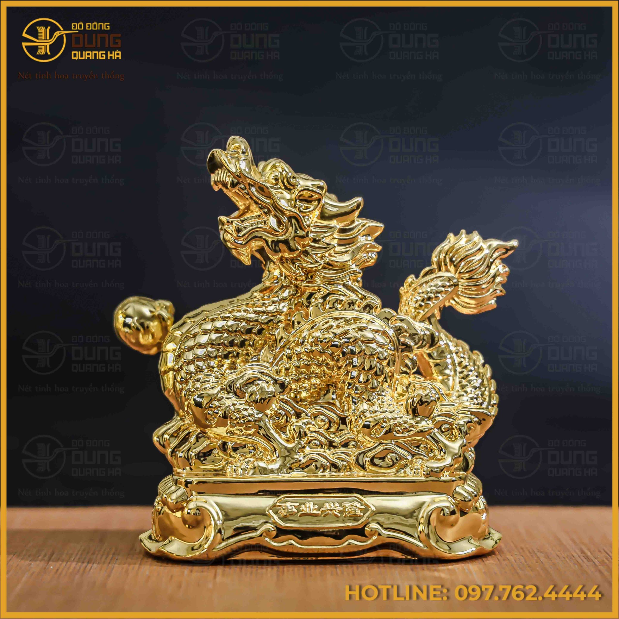 Sắc vàng rực rỡ quyện cùng cốt đồng bền bỉ tạo nên pho tượng rồng mang vẻ đẹp uy nghiêm và đầy kiêu hãnh. Đây không chỉ là một kiệt tác nghệ thuật thủ công mà còn là biểu tượng tối thượng của quyền lực và sự thịnh vượng.