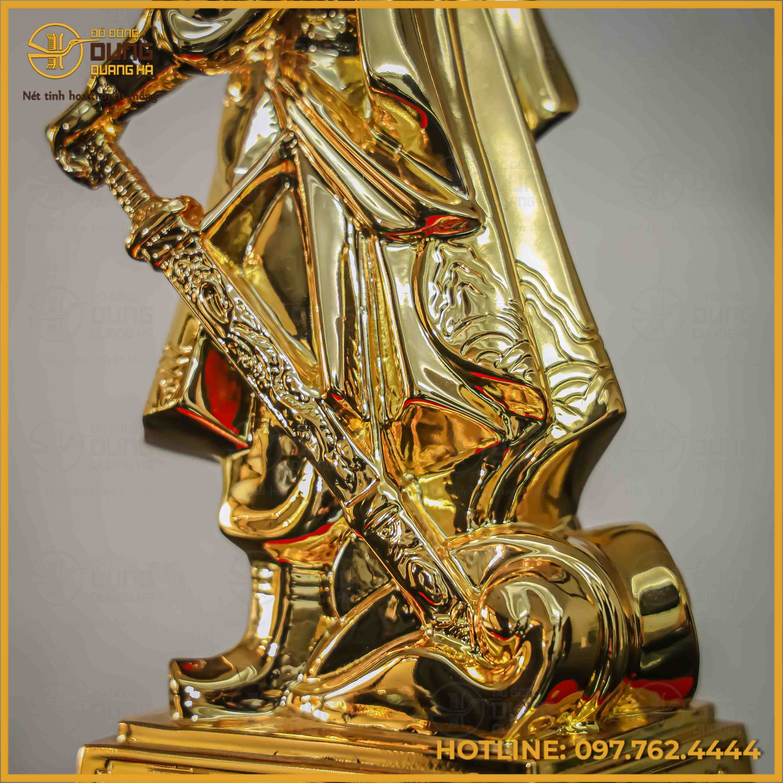 Bên cạnh đó, hình ảnh vị tướng tài ba còn đại diện cho trí tuệ, bản lĩnh và sự quyết đoán trong công việc. Đây là vật phẩm phù hợp cho người làm kinh doanh, lãnh đạo hoặc những ai mong muốn phát triển sự nghiệp bền vững. Lớp mạ vàng càng làm tăng thêm ý nghĩa về tài lộc, thịnh vượng và vị thế, góp phần nâng tầm không gian và khẳng định đẳng cấp của người sở hữu.