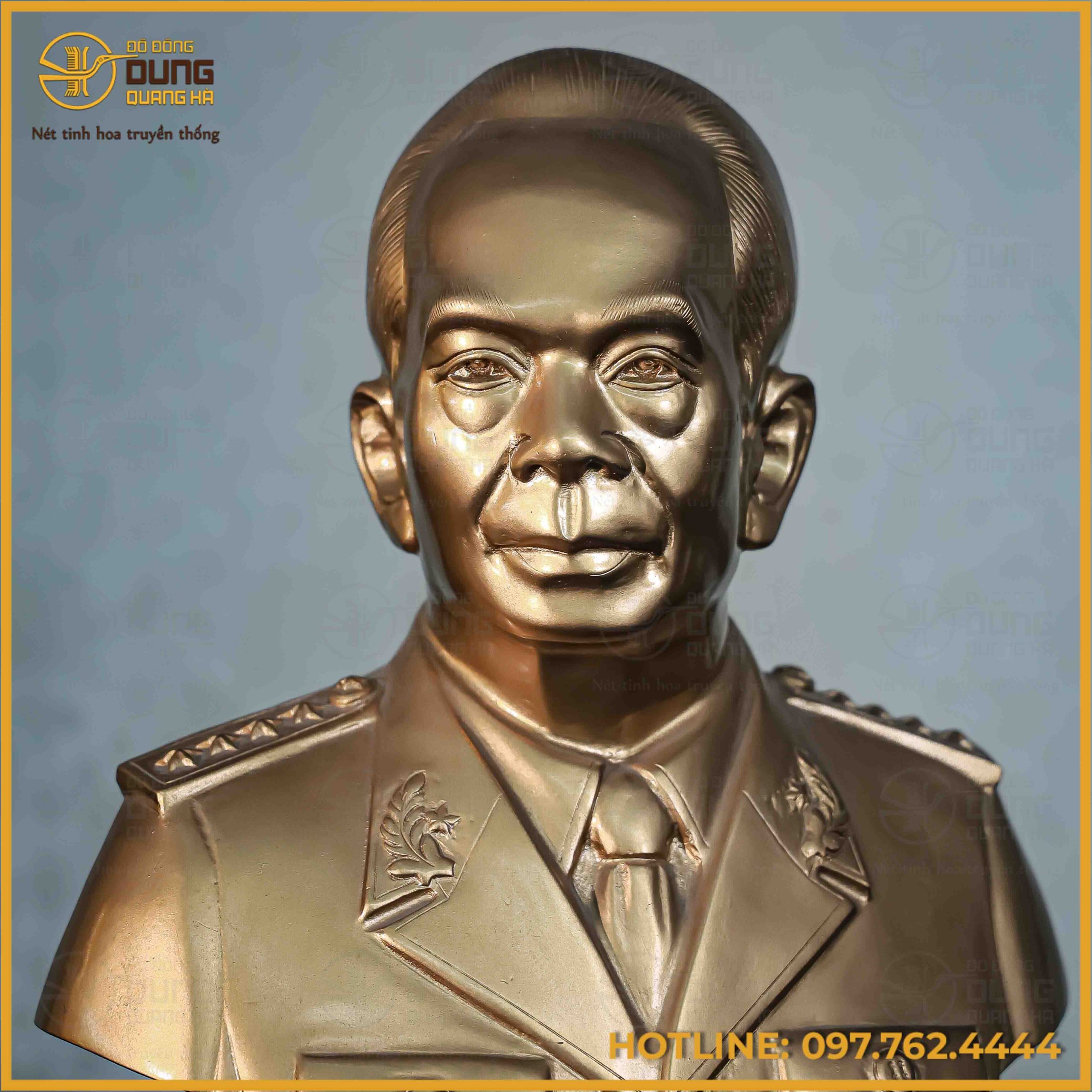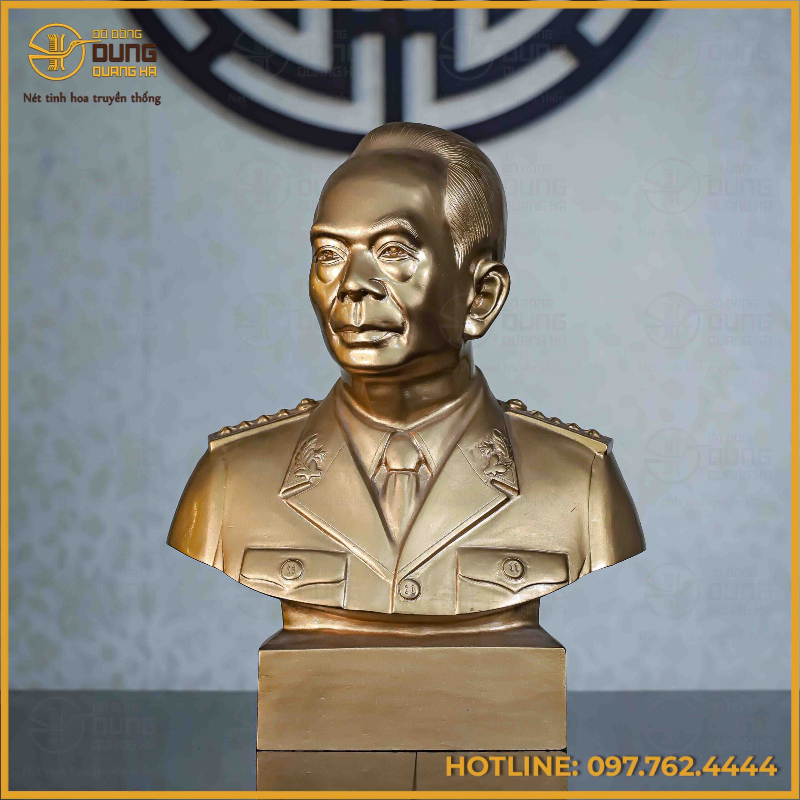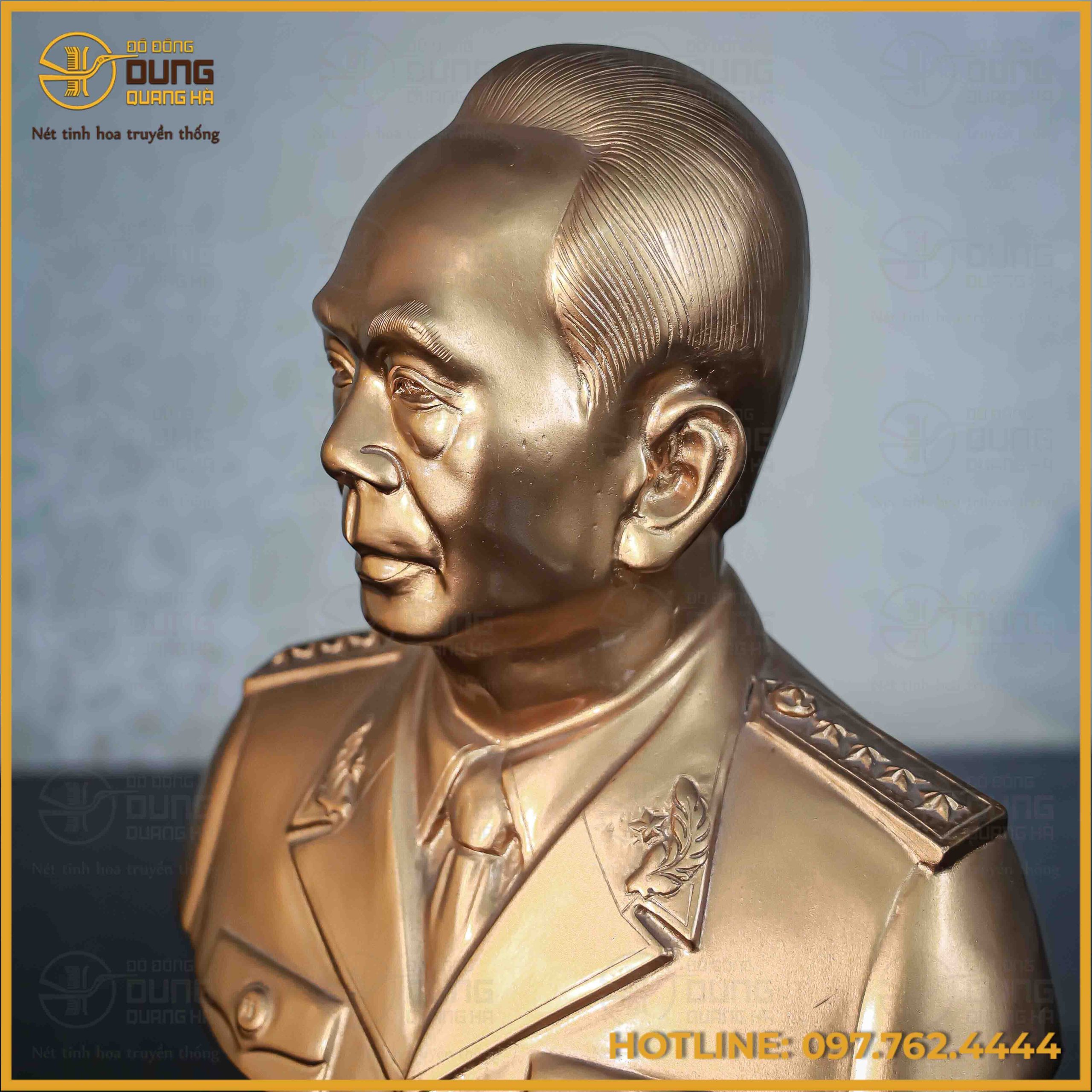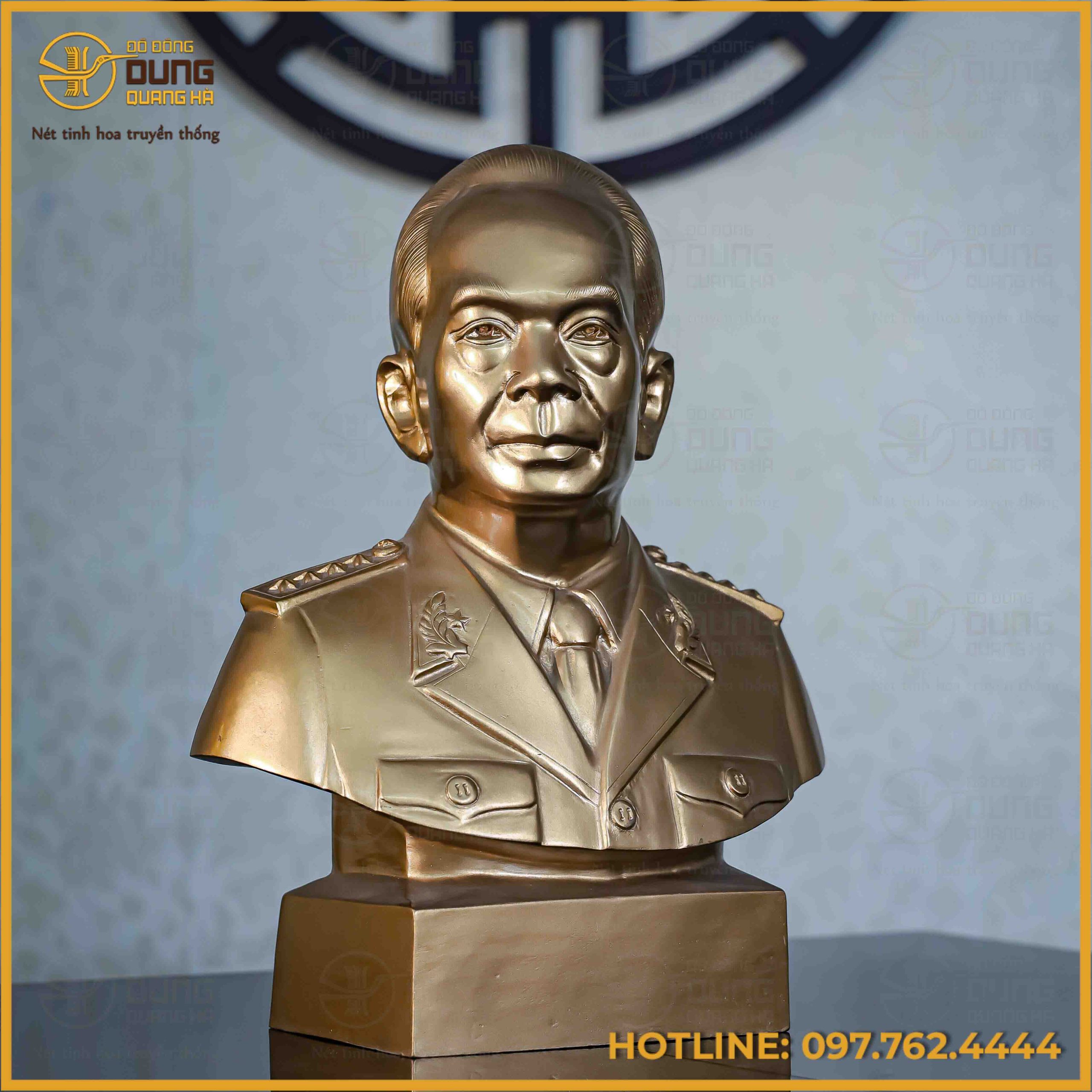 Tượng Bác Giáp bán thân đồng đỏ 40x32x14 là tác phẩm nghệ thuật mang đậm giá trị lịch sử và tinh thần dân tộc, tái hiện chân thực hình ảnh vị Đại tướng huyền thoại với thần thái uy nghiêm, trí tuệ và gần gũi. Sản phẩm không chỉ là một pho tượng trang trí mà còn là biểu tượng của lòng kính trọng, tri ân và niềm tự hào đối với một danh nhân kiệt xuất của dân tộc Việt Nam.
